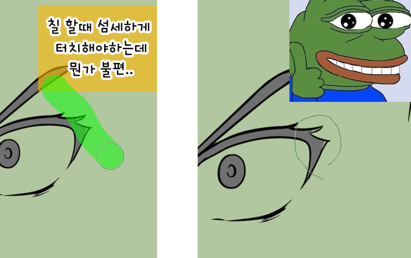 1. 필압이 안 먹히는 어색한 조작감을 제거하고 올가미로 변환 하였습니다.