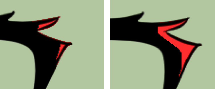 2. 선과 선이 만나는 뾰족한 부분을 섬세하게 칠할 수 있도록 했습니다. (예:머리카락 )